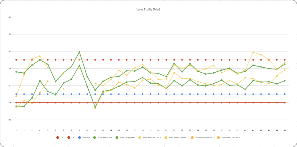 Cette approche a permis de réduire considérablement le temps d’acquisition d’image, mais la variabilité des mesures persistait en raison du positionnement des pièces et des points de référence flottants.