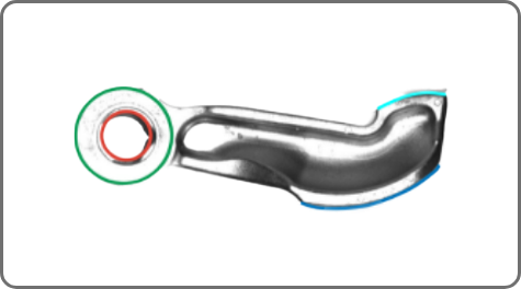 • Éclairage du trou d’huile : L’axe du trou d’huile n’intersecte pas le centre du diamètre intérieur de la pièce, nécessitant la conception d’une source lumineuse sur mesure capable d’éclairer de manière fiable l’intérieur du trou pour l’inspection.