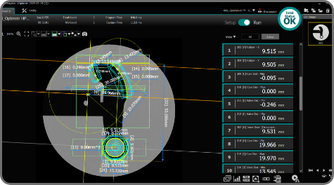En plus des contrôles dimensionnels, une caméra secondaire inspecte un trou d’huile de 1 mm afin de s’assurer qu’il n’est pas obstrué. Cette inspection nécessite une source lumineuse interne spécialisée insérée dans la pièce pour éclairer le trou d’huile et permettre une visualisation claire.