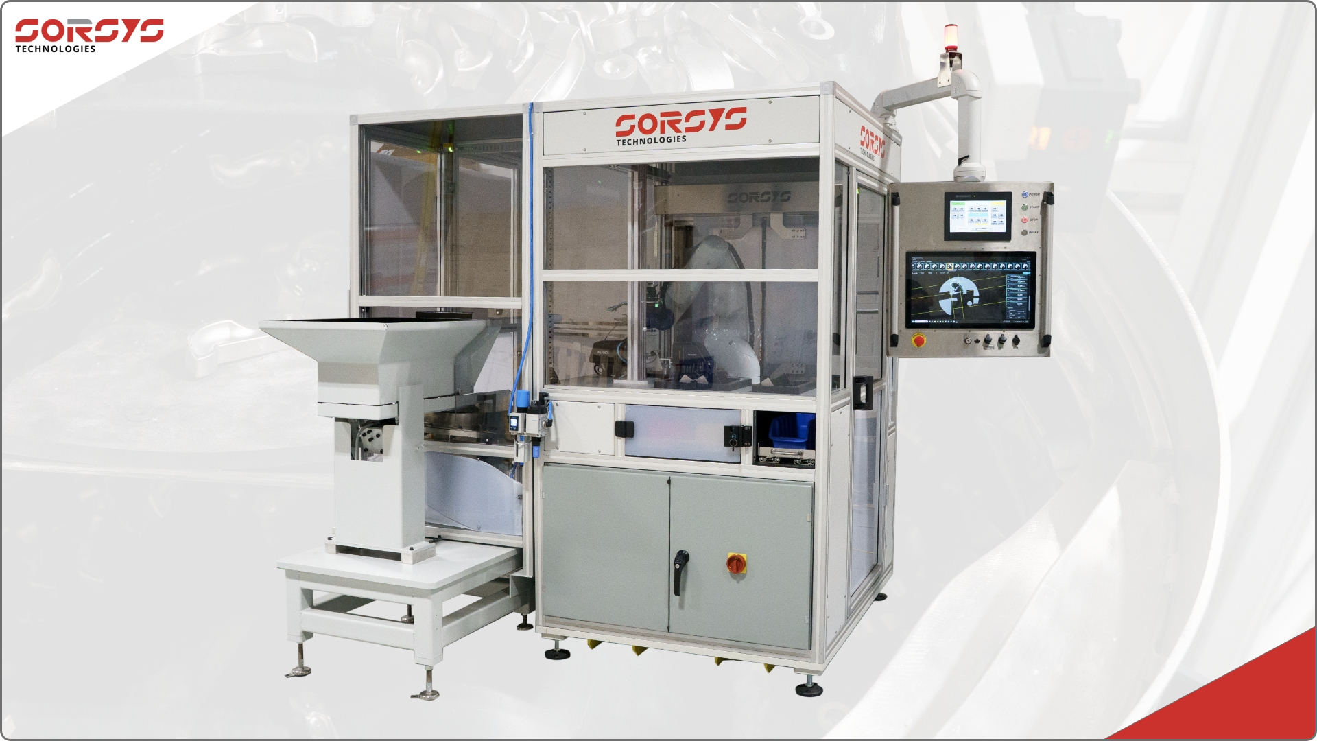 Le système comprend une cellule d’inspection équipée d’un dispositif de mesure de haute précision, capable de mesurer les caractéristiques critiques avec une précision allant jusqu’à 1,5 micron. Pour garantir une précision de mesure optimale, la pièce doit être orientée perpendiculairement à la caméra du système de vision.